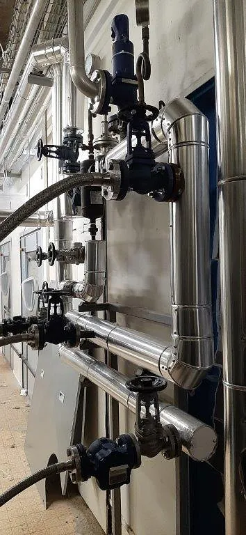Les travaux réalisés par CH4nge Groupe ENERTION et ses sous-traitants locaux ont concerné : la dépose et l’élimination des réseaux existants, l’étude des nouvelles lignes, la réalisation d’un nouveau barillet vapeur en chaufferie, les réseaux en inox 316L vapeur 8 bar et condensats, les calorifuges à l’issue des épreuves hydrauliques.