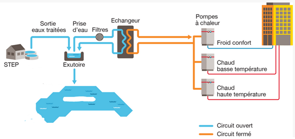 The goal : to turn wastewater into a local renewable energy source through an energy loop - a tempered water network designed to power reversible heat pumps and other thermal systems.