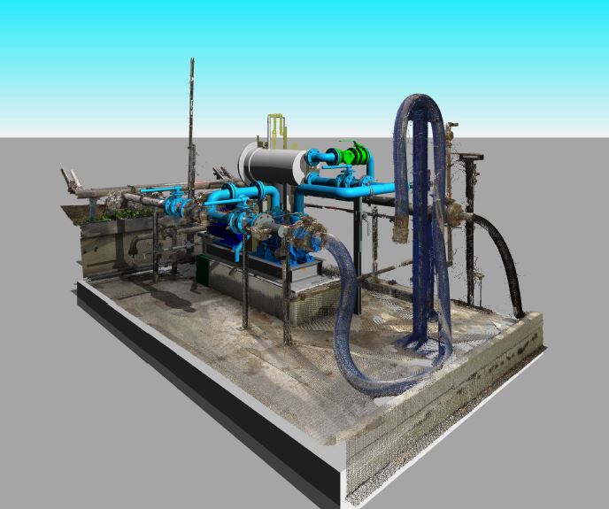 The work was carried out in partnership with local subcontractors working staggered hours to ensure continuity of service for the laundry. The measurements were taken using a FARO laser scanner, which enabled 3D modelling of the lines in their environment.